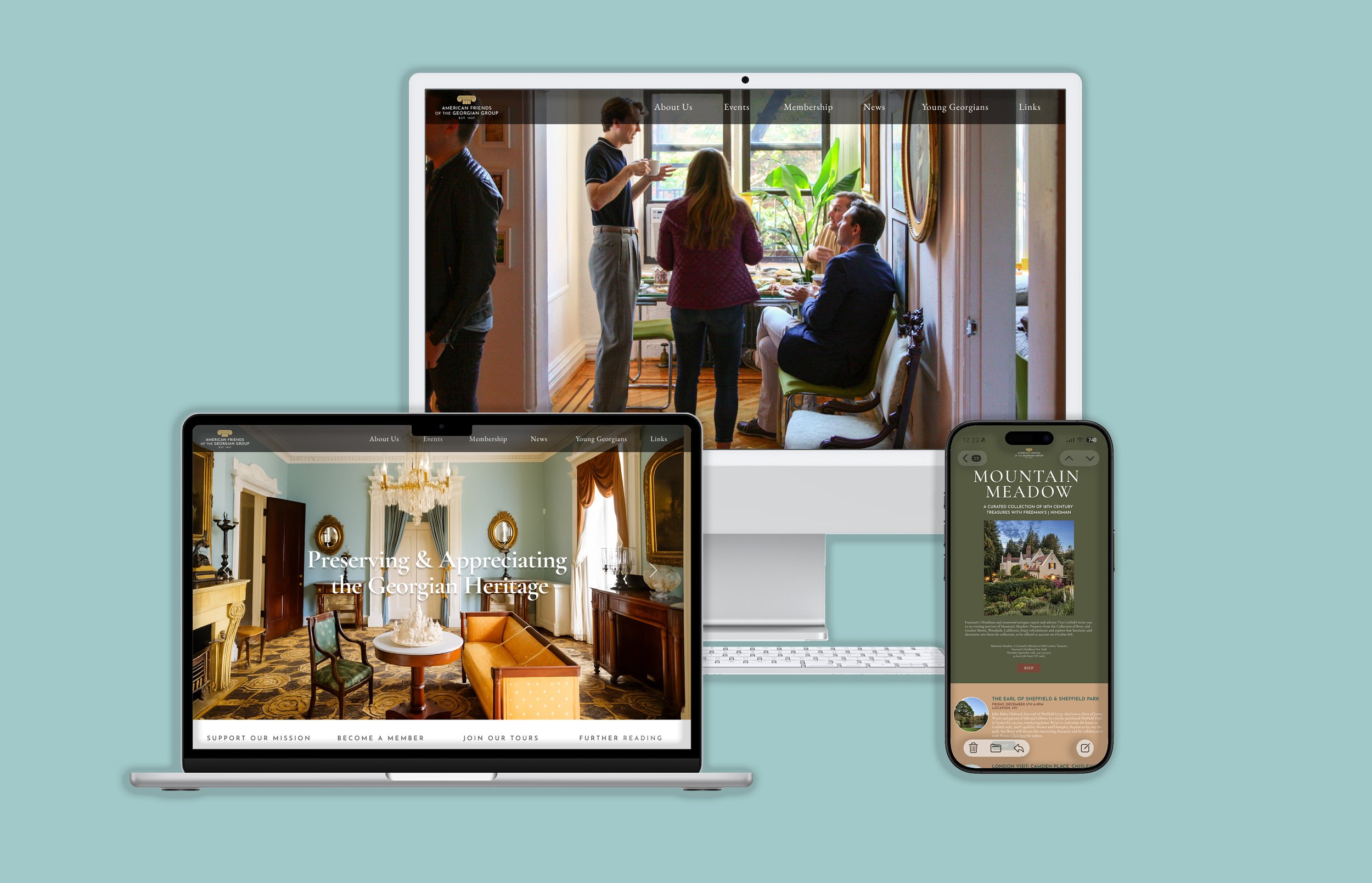 Website design and branding for the The American Friends of the Georgian Group. Their endeavors seek to expand knowledge and promote public awareness of all aspects of Georgian design.
